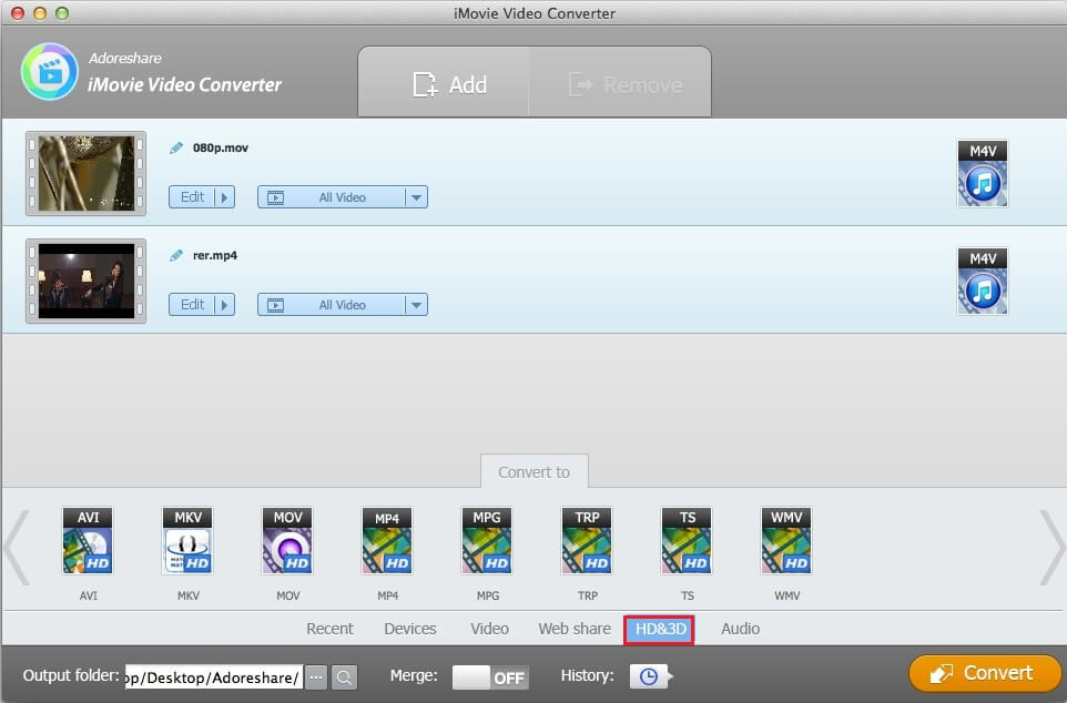 Adoreshare iMovie Video Converter is an all-in-one Mac iMovie converter that allows you to convert and export iMovie videos (MP4, MOV, DV) to AVI, WMV, MOV, FLV, etc. so that you can easily play your favorite iMovie videos anytime, anywhere on any device and share them on Facebook, YouTube, Vimeo and more without any problem.