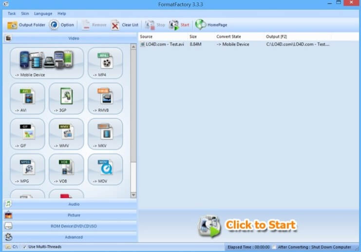 Moreover, Format Factory is also available in 62 languages, and you can customize its interface with 4 different skins.